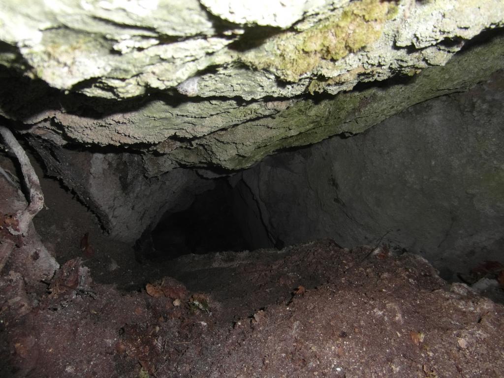 Ingresso parzialmente chiuso da terra foglie e radici.